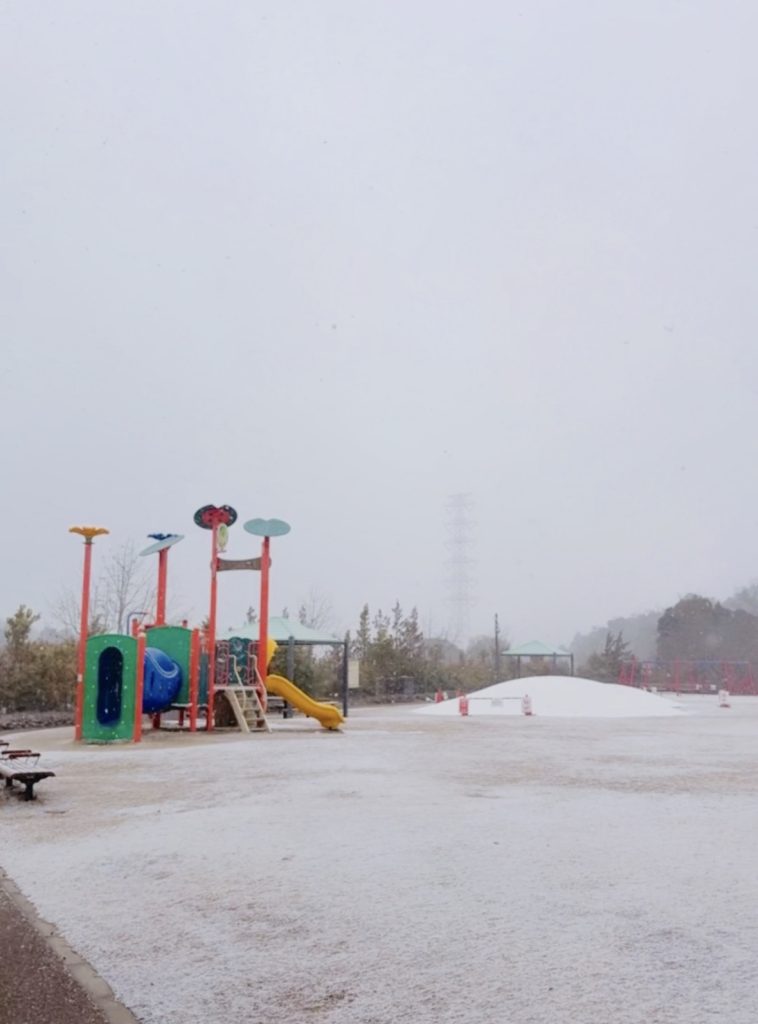 雪のちらつきから30分ほどで公園内が真っ白に!!